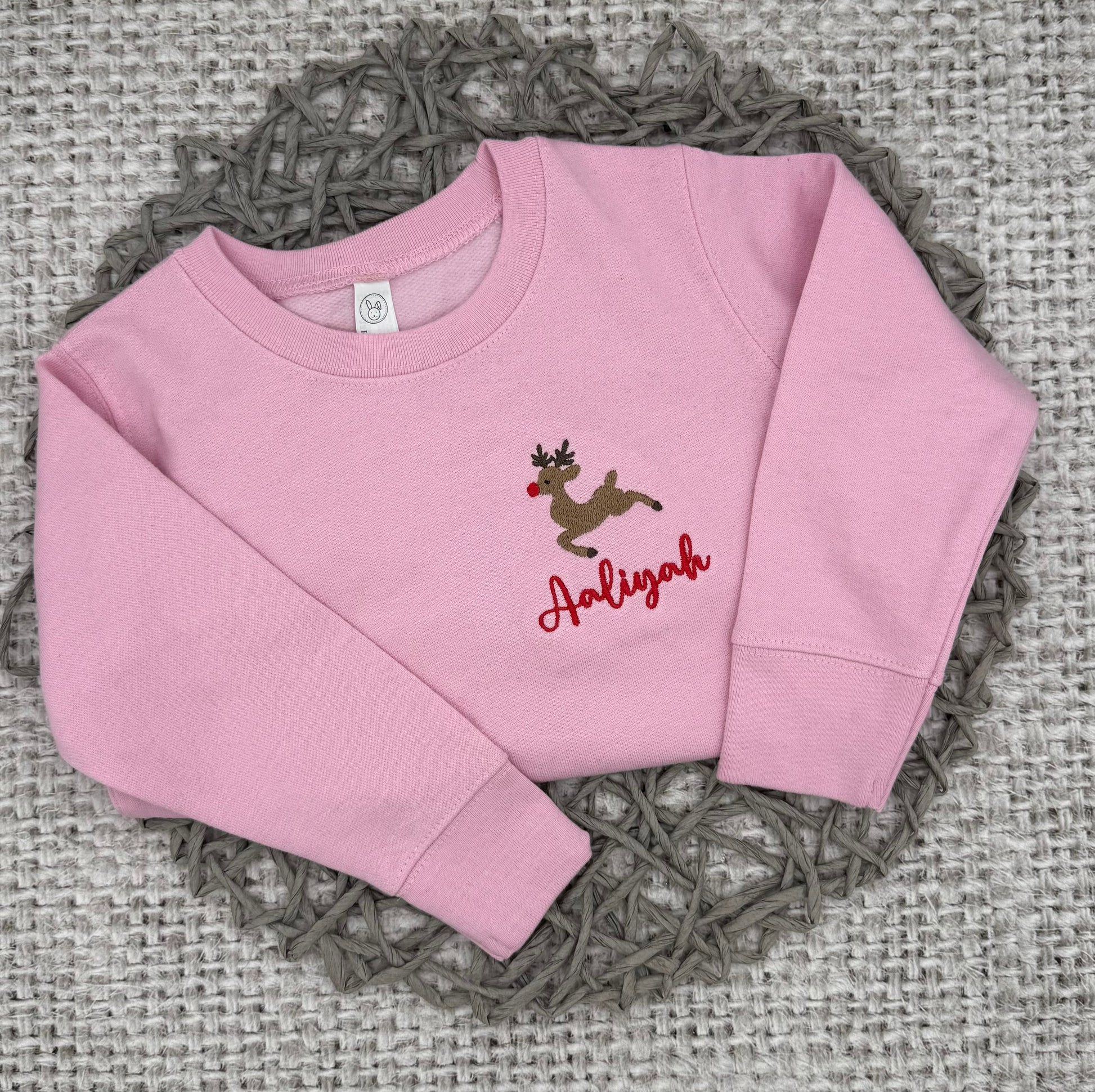 This toddler-sized Reindeer with Name Crewneck offers a playful and stylish addition to your little one's wardrobe. Made with soft and comfy fabric, it comes in a variety of colors and features a charming reindeer design with a personalized name. Perfect for keeping your child warm and fashionable.